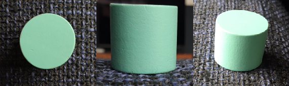 Allereerst: wat stelt een tensor intuïtief voor? Wel, toevallig heb ik een tensor in huis. Of beter gezegd: een analogie voor een tensor, namelijk een cilinder. Die zie je in de afbeelding hierboven. In de linker afbeelding lijkt de cilinder een cirkel. Maar als ik vervolgens om de cilinder draai, dan lijkt het opeens een rechthoek te worden. En ik kan natuurlijk ook nog andere invalshoeken bekijken waarin de vorm van de cilinder lijkt te veranderen. LIJKT, want de vorm van de cilinder maalt er natuurlijk niet om dat er een nieuwsgierige nerd naar em zit te koekeloeren vanuit verschillende hoeken. Dat is het kernidee achter een tensor: een tensor is een meetkundig voorwerp dat je vanuit verschillende invalshoeken kunt bekijken. Bij elke invalshoek LIJKT de tensor anders te zijn, maar als meetkundig voorwerp verandert het niet.