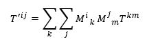 Per definitie transformeert een tensor met twee indices ook zo: